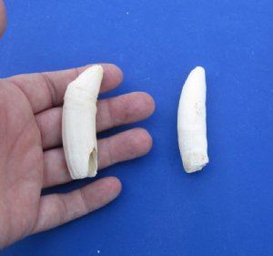Alligator teeth in bulk and individual large alligator tooth hand picked for making alligator tooth necklaces, and alligator tooth pendants. Alligator teeth are measured around the curve of the tooth using a cloth tape measure. 3/4 inches and Up alligator teeth are sold in lots of 1 piece, 2 pieces, 3 pieces, 10 pieces and 100 pieces. These gator teeth were legally purchased from a licensed alligator farm or from a state or federal controlled hunt.