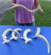 We have hand selected and photographed these Polished White Kudu Inner Horn Cores, kudu horn inner bone core (Tragelaphus strepsiceros) imported from South Africa. These white kudu inner horn cores or kudu horn white inner bone cores are measured around the curl of the horn - not straight. They are used in making lamps, carving, inlaid crafts and numerous other taxidermy crafts.