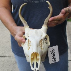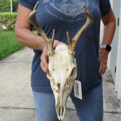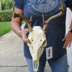 Shop our one of a kind white-tailed deer skull, hand picked and photographed allowing you to see what you are buying. These whitetail deer skulls have been cleaned and whitened and are ready for display. You can choose a spike to an 8 pointer white-tailed deer skull for displaying in your man cave or hunting lodge.