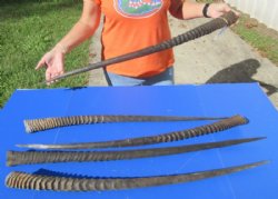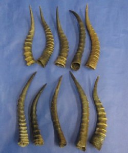 Animal horns for sale and animal antlers for sale, hand selected and photographed priced slightly above wholesale for log cabin decor, crafts and making shofars. We carry kudu horns, sheep/ram horns, nyala horns and goat horns for making shofars, and gemsbok horns, Indian cow horns, water buffalo horns, male and female springbok horns, African impala horns, blesbok horns, polished water buffalo horns, polished kudu horns, nyala horns, wildebeest horns, fallow deer antlers and eland horns for taxidermy crafts. Animal horns and antlers can be used for making antler lamps, antler chandeliers, knife handles, cane handles and in numerous other crafts.