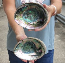 Large abalone shells for sale, available in sizes 3 up to 8 inches, priced from $7 to $20.   Browse our vast inventory of hand selected and photographed large green abalone, pink abalone, red abalone, polished green abalone and polished pink abalone shells.  Abalone smudge bowls and sage smudge bowls are made from several types of abalone shells.  These abalone shells for sale can be used for smudging and for display.  All of these abalone are 100% natural commercial grade and real (not replicas).  They will have natural imperfections from living in the oceans and aging.  All of these abalone  are very nice shells - but ARE NOT perfect. None are "specimen grade".