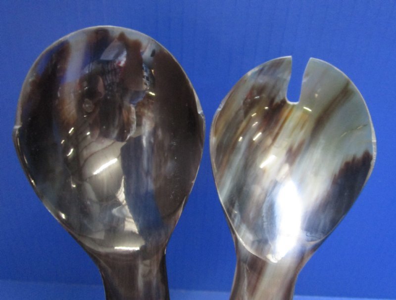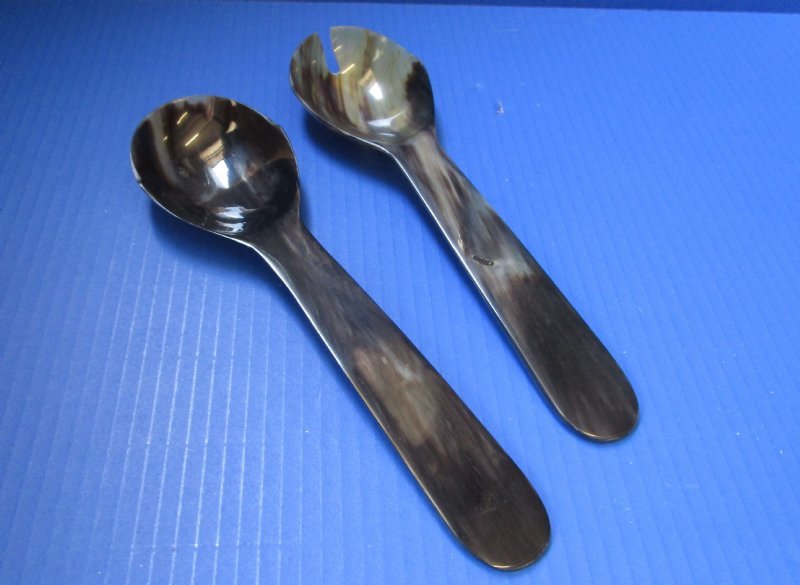 Wholesale Polished Buffalo Horn Soup Spoon and Spork Set for sale measuring approximately 7-1/2 inches long. Our buffalo horn Spoon and Spork set are hand crafted out of water buffalo horns and will vary in color and are imported from India. These buffalo horn spoon and spork sets will have a slight odor and my have minor scratches due to buffing and the natural material used. View all photos. The variations in shape and color can only be made by nature; thus a horn may have natural blemishes which will not affect it use, but does verify it authenticity.