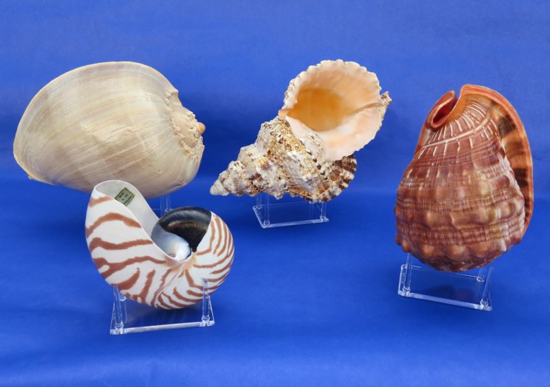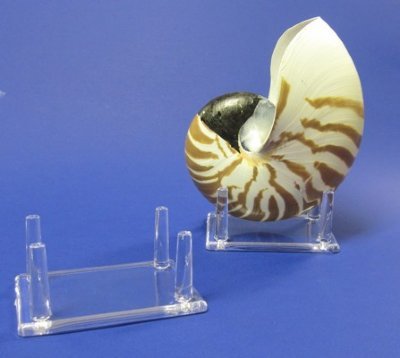 4 leg plastic display stands wholesale or shell stands and rock stands measuring 3-1/4 inches by 2-1/2 inches. These  4 post plastic display stands are perfect for displaying small and medium decorative shells.  These plastic display stands are also used foor rock display stands, and mineral display stands.  These seashell stands are perfect for displaying abalone shells,  tonna shells, murex ramosus, imperial volutes,  Frog Shells, barnacle clusters, cameo shells, thorny oyster shells, 4" chambered nautilus shells,  4" green turbo Shells. 4 leg plastic display stands are also used by rock and mineral collectors.