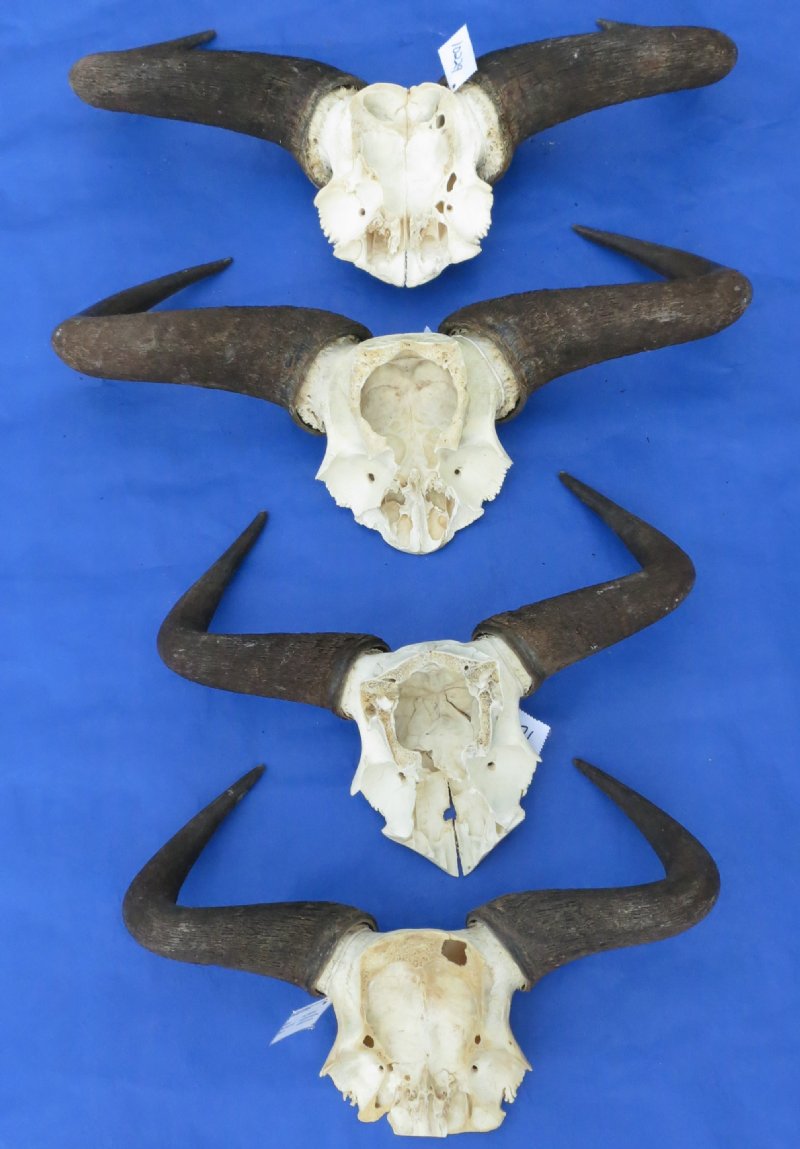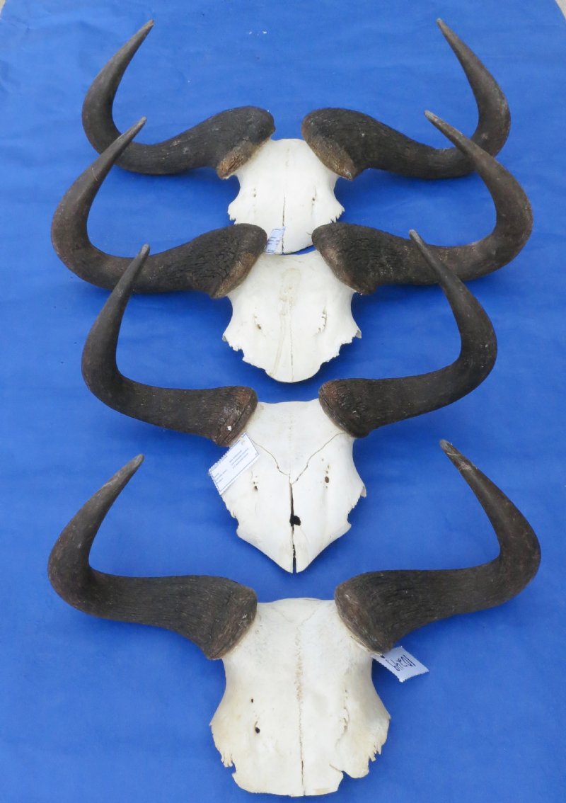 If you need to see exactly what you are purchasing, we have a large selection of photographed and Hand Selected Blue Wildebeest Skulls for you to purchase, at prices slightly above "wholesale". Click on the blue link to view the skulls.