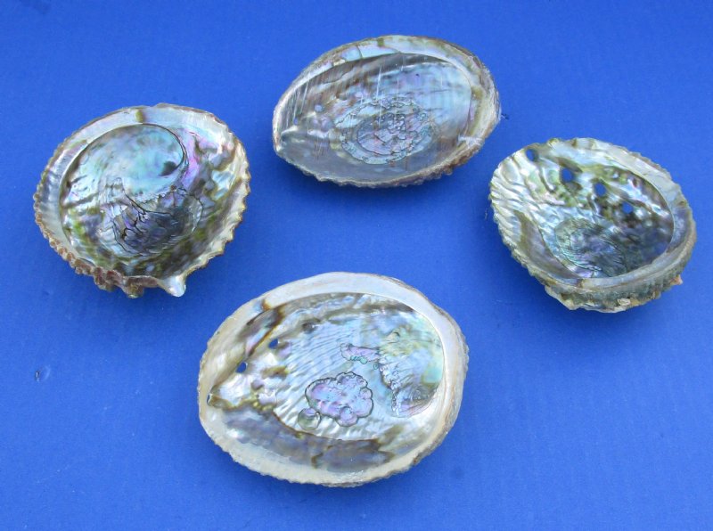 These pink abalone shells are commercial grade and will have imperfections from living in the oceans and aging. The back of these shells will have natural cuts, scrapes, indentations, chipped edges and may have a few tiny holes. The interiors will have shades of silver, blue and greens.