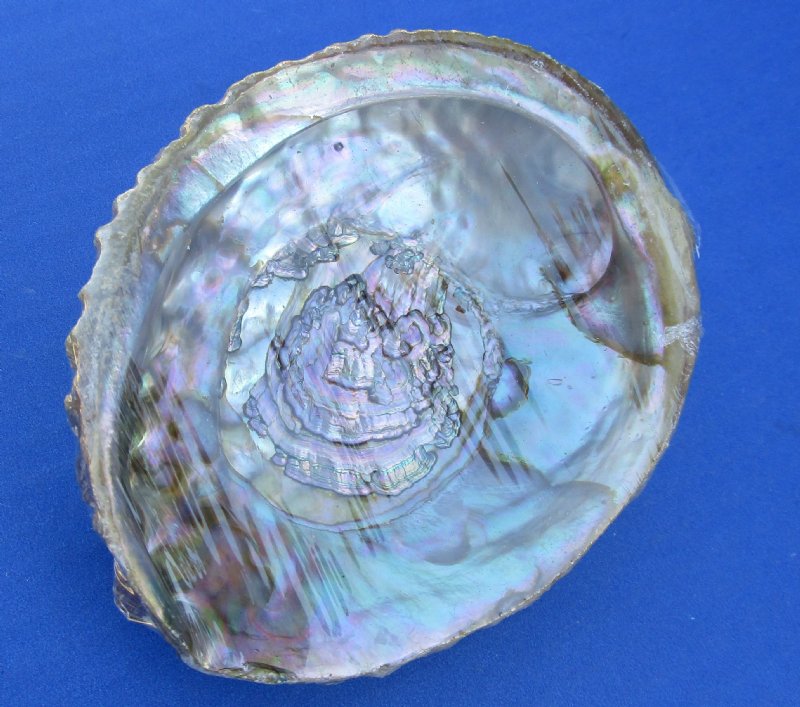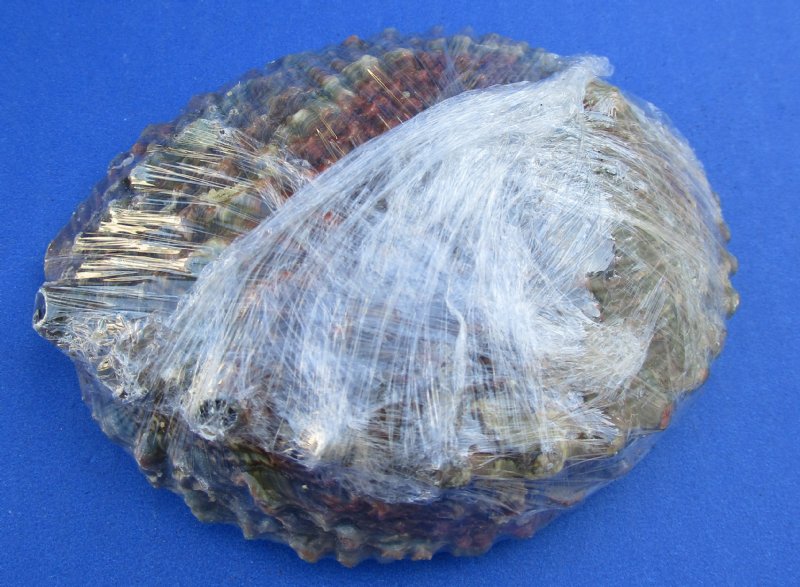 Wholesale pink abalone shells, Haliotis corrugata, commercial grade with natural imperfections. Some have a clear coating on the shells and have a highly corrugated shell margin. Because of this, they have an alternate name, the corrugated abalone. These pink abalone shells are wrapped in cellophane - review photos. These pink abalone measure between approximately 4 inches and 5 inches in size. Abalone have been used in this area since man was first here. The native Americans ate the abalone meat, used the whole shells as bowls, pieces of the shells for fish hooks, scrapers, beads, necklaces and decorations, and even bartered with the shells.