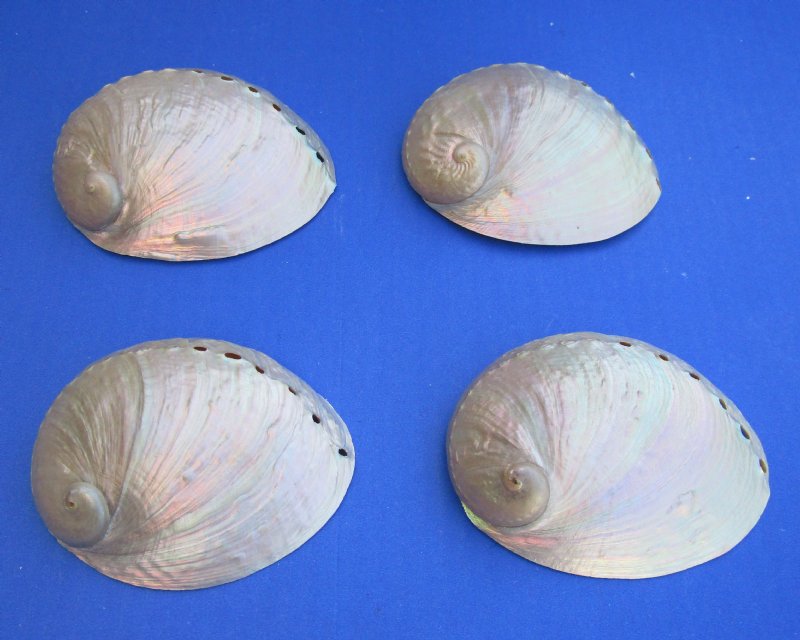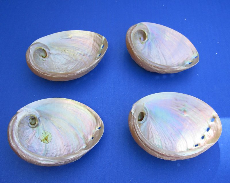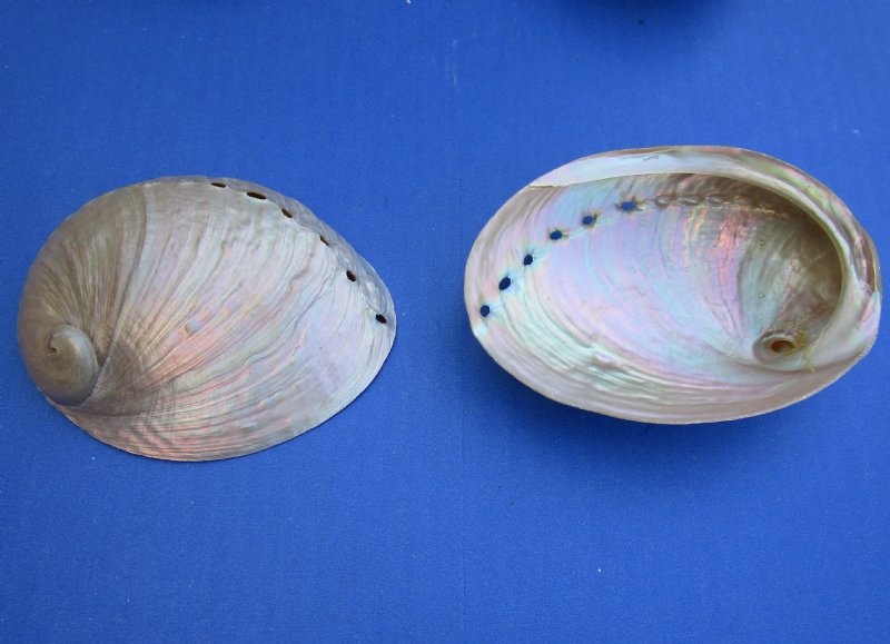 Wholesale Pearlized Haliotis laevigata, common name the smooth Australian abalone or greenlip abalone or whitened ear shell measuring approximately 3-1/4 inch up to 4 inch. This beautiful naturally dish-shaped abalone has a pearly tan-colored (mother of pearl) surface. Abalone can be used in making buttons, and as inlay in furniture, knife handles, and in musical instruments such as guitars, etc. The abalone shell is also sold for seashell decorating and used in shell crafts and making inlaid knife handles, tables and jewelry. The abalone is harvest for its shell and edible foot from the ocean and from commercial farms that specialize in growing abalones.