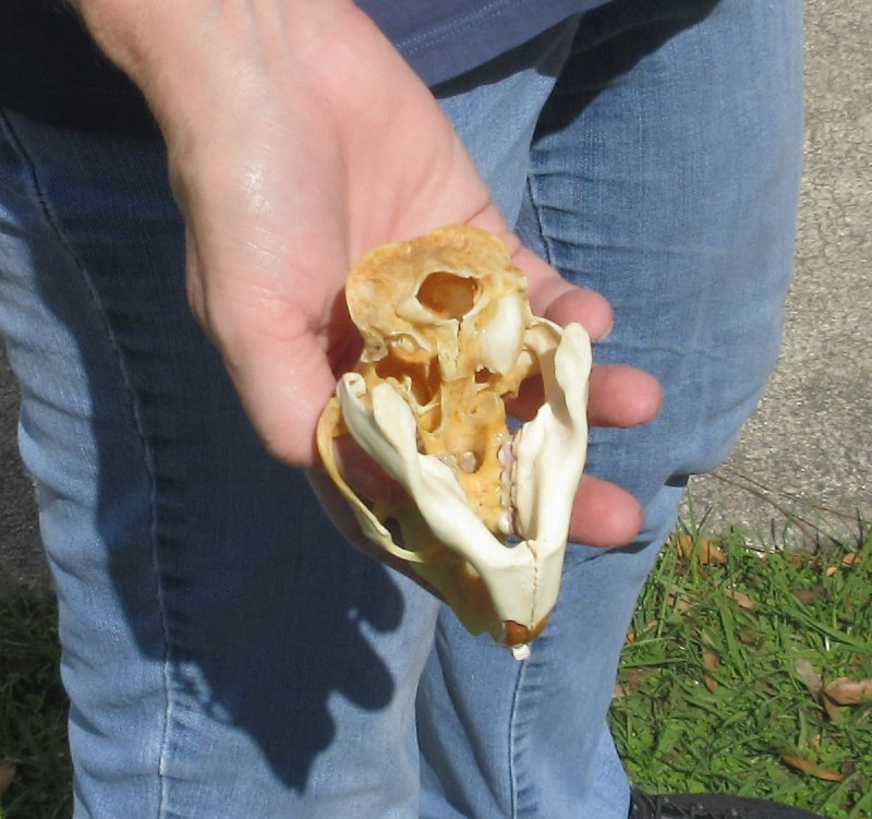 This is B grade North American porcupine skull, measuring approximately 4-1/4 inches long and 2-3/4 inches wide. Discolored and damaged skull - jaws have been glued shut - review photos. This porcupine skull (Erethizon dorsatum) is ready for display and is perfect for skull collectors and collectors of weird and unusual items. All of our animal skulls are commercial grade and imperfect. Our porcupine skulls will have imperfections due to the natural aging process and living in the wild--scars, blemishes, rub areas, broken and missing teeth, bug bite marks, etc.