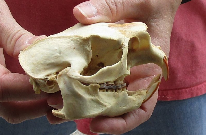 This is a North American porcupine skull, measuring approximately 4-1/4 inches long and 2-1/2 inches wide. This porcupine skull (Erethizon dorsatum) is ready for display and is perfect for skull collectors and collectors of weird and unusual items. All of our animal skulls are commercial grade and imperfect. Our porcupine skulls will have imperfections due to the natural aging process and living in the wild--scars, blemishes, rub areas, broken and missing teeth, bug bite marks, etc.