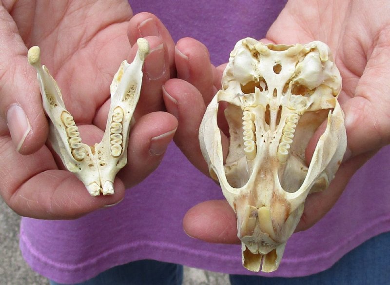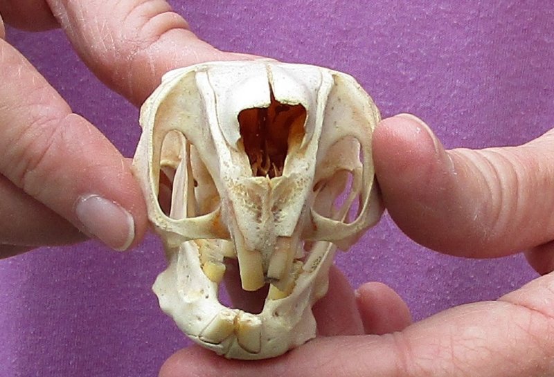 South African Spring Hare skull (Pedetes capensis) measures approximately 3-1/2 inches long and 2 inches wide.  The South African springhare or springhaas is not actually a hare, but a member of the order Rodentia.  It is one of two living species in the genus Pedetes, and is native to southern Africa.  The springhare resembles a small kangaroo (though unrelated) with well-developed hind legs, which allow it to leap over 2 m (6 ft 7 in).  It is for this ability that it gets its name.  All of our springhare skulls are commercial grade and imperfect.  They will have imperfections due to the natural aging process and living in the wild--scars, blemishes, rub areas, broken/missing teeth, bug bite marks, etc.  These springhare skulls have been cleaned and cleared for legal entry into the United States by the U.S Fish and Wildlife Service and U.S Customs.