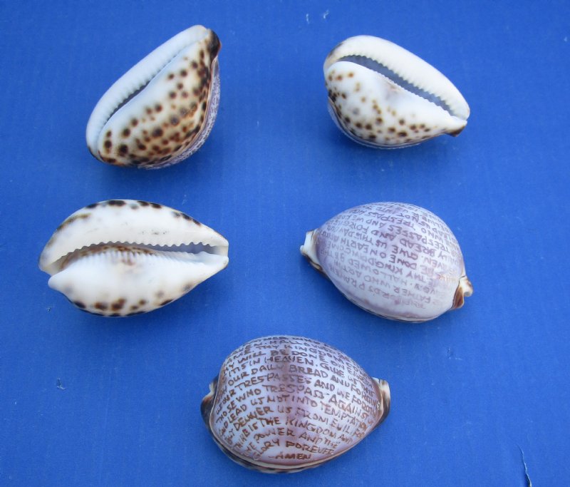 Wholesale Lord's Prayer Carved on Tiger Cowrie - 10 pcs @ $1.90 each; 60 pcs @ $1.70 each