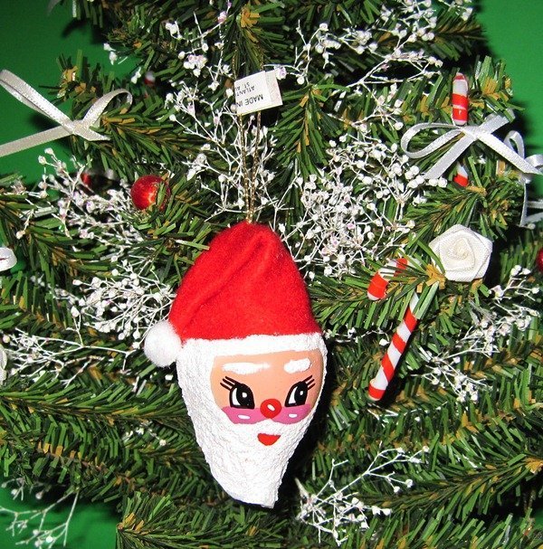 Wholesale Painted Santa Face on Canarium Shell with Red Cap Seashell Santa Christmas Ornament - 10 pcs @ $2.75 ea; 25 pcs @ $2.45 ea