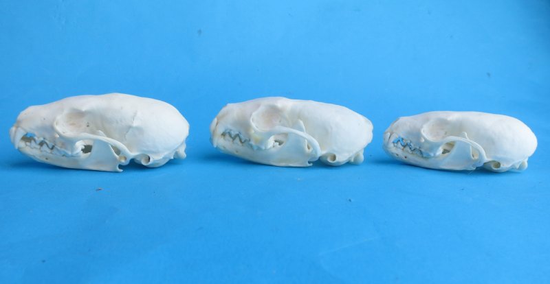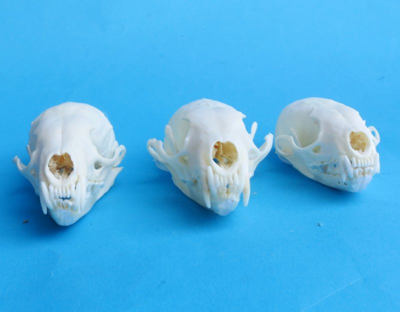 Wholesale American pine martin skulls for sale 2-3/4" - 3-1/2" (mouth glued shut) $24 each. 6 pcs @ $21 each