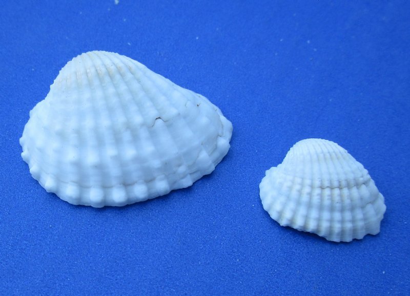 Wholesale Anadora Granosa, Tiny White Cardium , measuring approximately 3/4 to 1-1/4 inches.  Ribbed Cockle Shells for Sale are used in making shell mirrors, shell ornaments, shell wreaths, shell characters and in shell baskets. White cardium ribbed cockle shells are pretty white shells used in numerous shell craft projects.