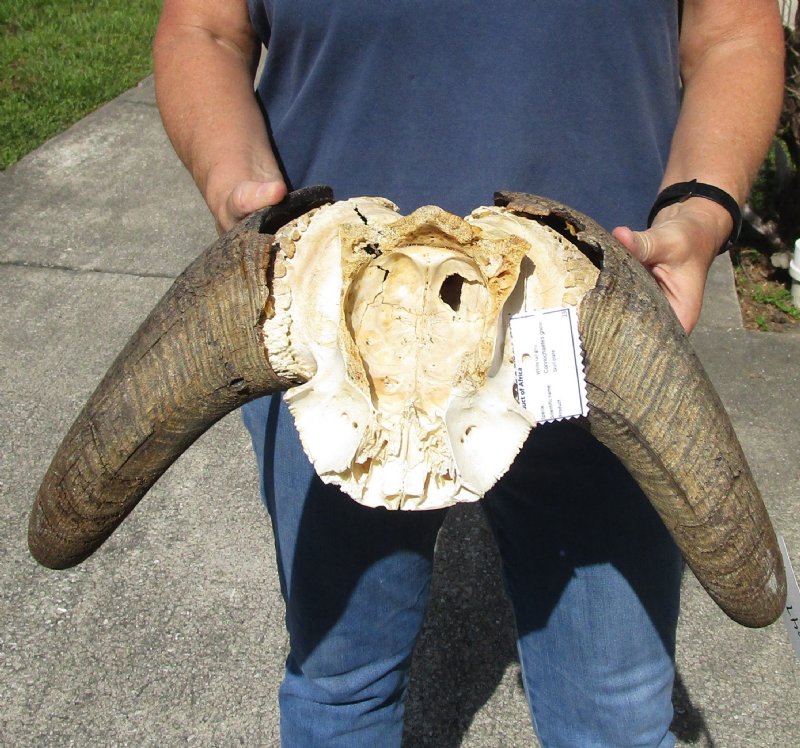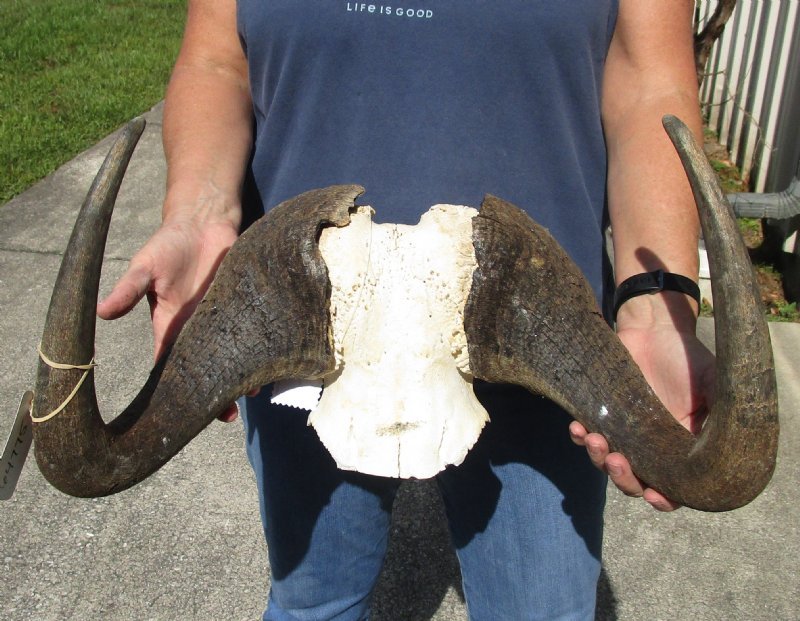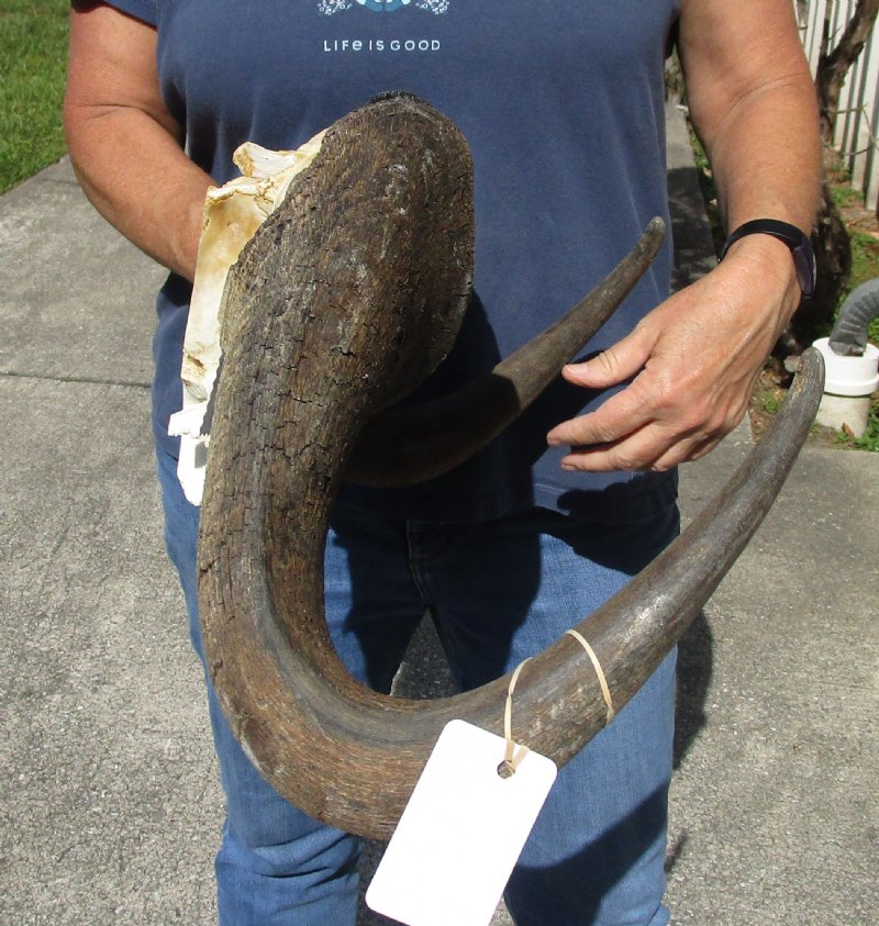 18-1/2 inch wide Male Black Wildebeest skull plate with horns for $46
