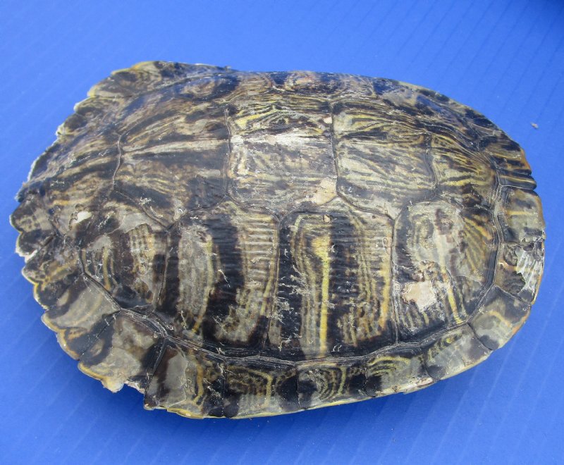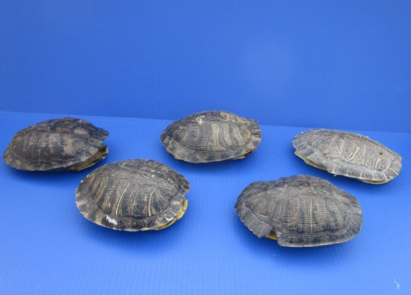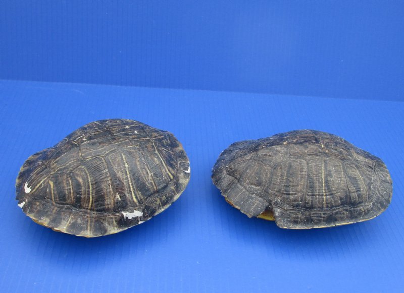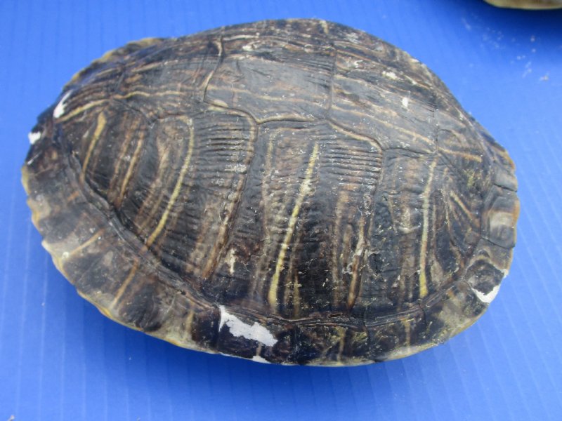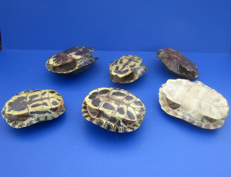 #2 grade Wholesale turtle shells (mostly red ear slider) measuring between 3 inches and 7 inches in length. These are damaged and discounted turtle shells.  They will have holes, gouges, bite marks, missing pieces of the top shell, etc - review all photos. The shells of the turtle are used in Native American crafts.