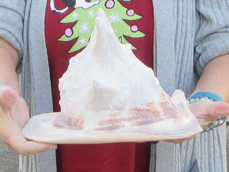 Yellow helmet shell, Horned helmet shells, Cassis cornuta are large seashells used in coastal home decorating.  This shell measures approximately 10 inches long.  These yellow helmet shells, also called horned helmet or cassis cornuta are beautiful peach colored shells.