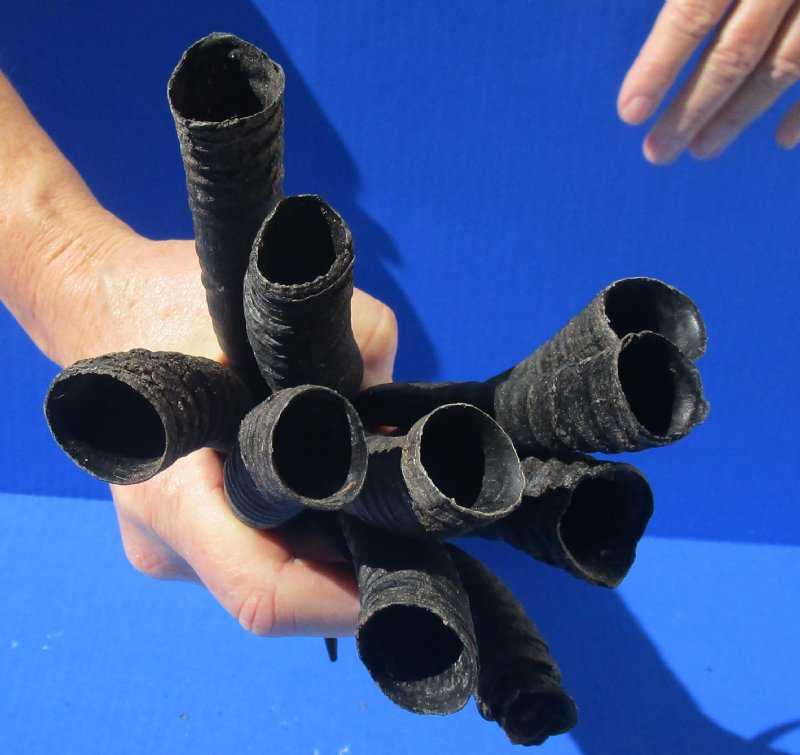 10 pc lot of female springbok horns from Africa for horn crafts measuring between 5-1/2 inches and 9-1/4 inches long, measured around the curve of the horn.  Review all photos. These 10 pc lot springbok horns, Antidorcas marsupialus,  are from wild female springbok animals and will have imperfections normally found on all wild animal horns.
