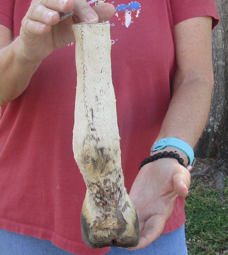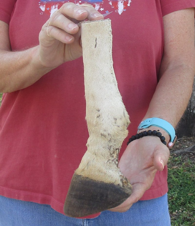 African Zebra Foot Mount (Equus burchelli) for sale, measuring approximately 10 inches tall. This zebra foot mount was professionally tanned and mounted by a South African taxidermist. - This foot mount has NO STRIPES and does not stand on its own. There is visible stitching on the backs of these foot mounts. Review all photos. The zebra feet are from wild African zebra and will have natural imperfections (bald spots, wear on hoofs, etc.) that are found on all wild animal feet. The Zebra was obtained from the African Government's culling programs and was cleared for legal entry into the U.S. by the U.S. Fish and Wildlife Service and U.S. Customs.