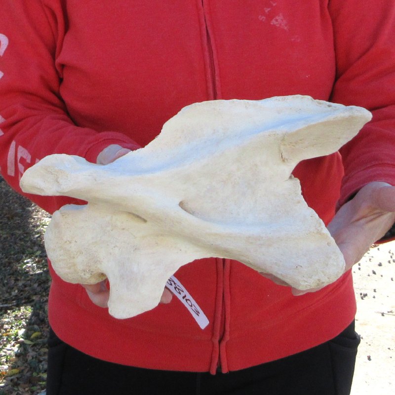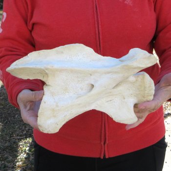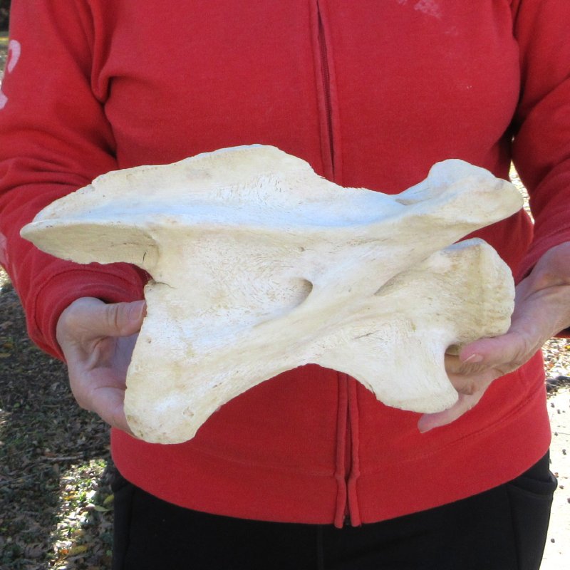 Giraffe Neck Vertebra Bone (Giraffa camelopardalis) for sale measuring approximately 11-1/2 inches long and 6 inches wide.  Review all photos. This giraffe vertebra bone is from a real African Giraffe's neck and will have some stains and natural imperfections normally found on all wild animal bones.