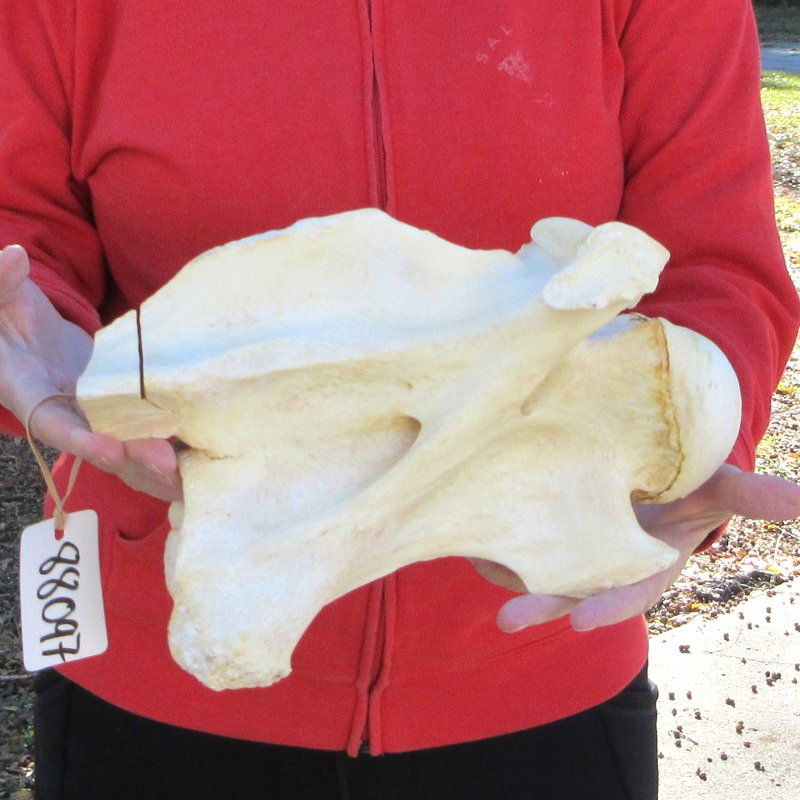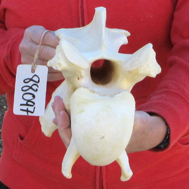 B-Grade Giraffe Vertebra Bone (Giraffa camelopardalis) for sale measuring approximately 11 inches long and 7 inches wide. -  Discoloration and slice through bone. Review all photos. This giraffe vertebra bone is from a real African Giraffe's neck and will have some stains and natural imperfections normally found on all wild animal bones.