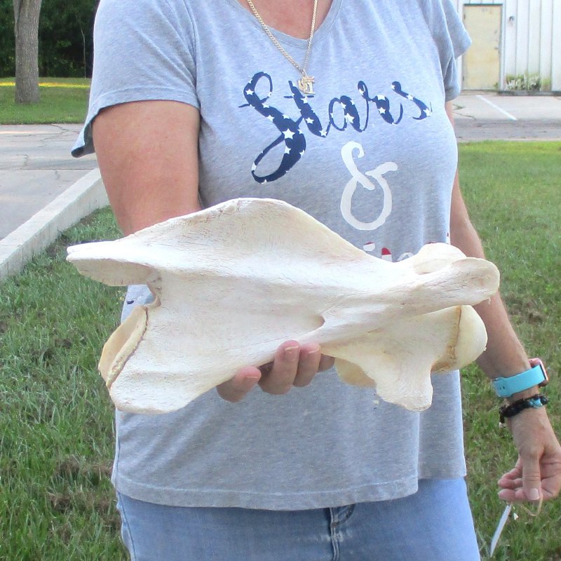 Giraffe Neck Vertebra Bone (Giraffa camelopardalis) for sale measuring approximately 12-1/2 inches long and 6 inches wide. Review all photos. This giraffe vertebra bone is from a real African Giraffe's neck and will have some stains and natural imperfections normally found on all wild animal bones.