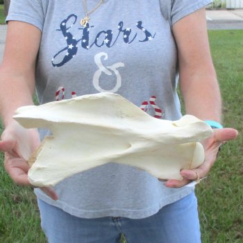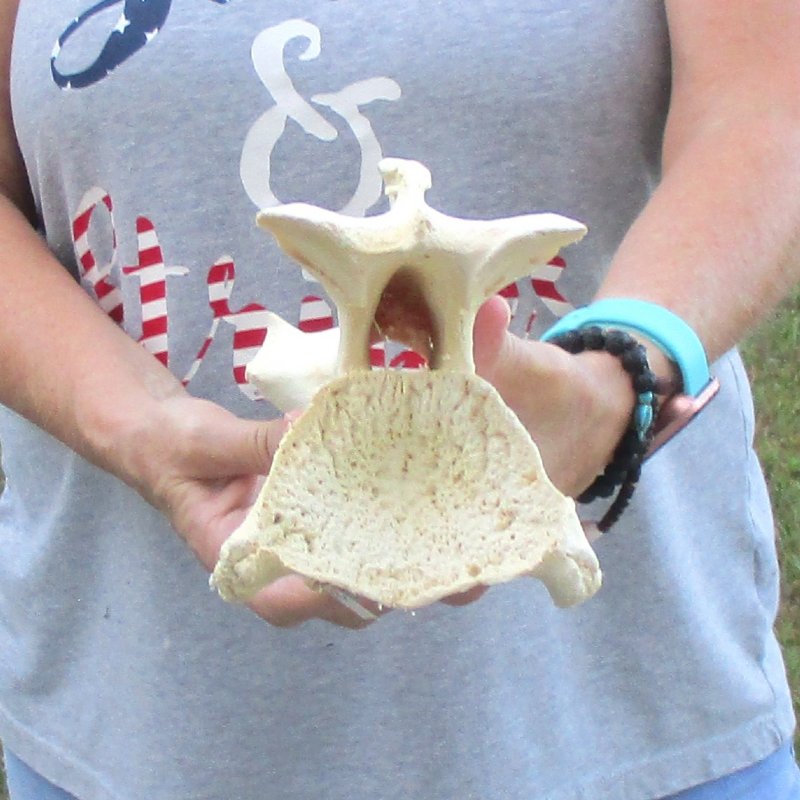 Giraffe Vertebra Bone (Giraffa camelopardalis) for sale measuring approximately 12 inches long and 6 inches wide. Review all photos. This giraffe vertebra bone is from a real African Giraffe's neck and will have some stains and natural imperfections normally found on all wild animal bones.