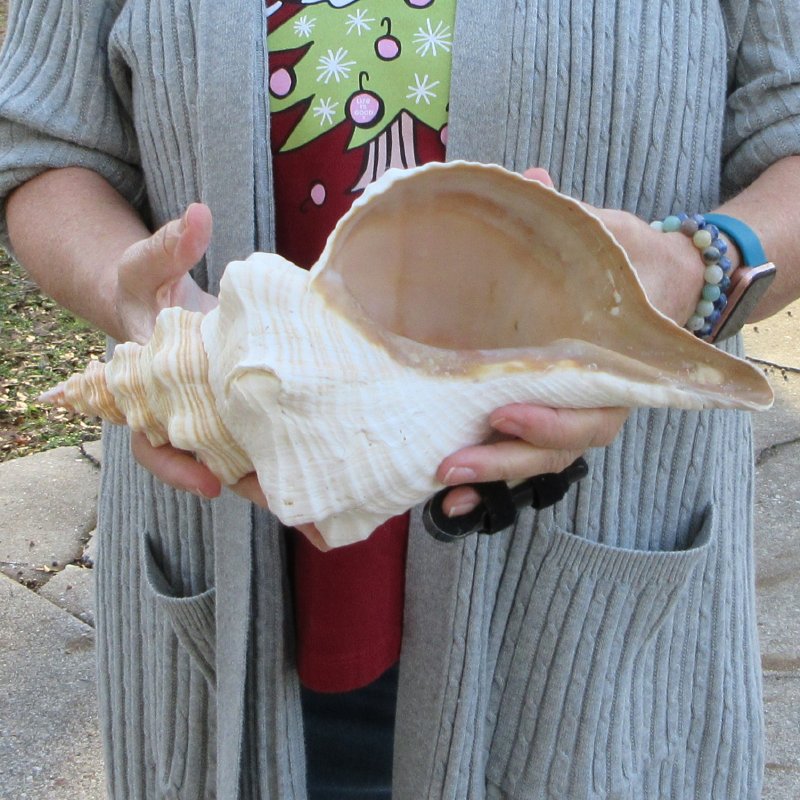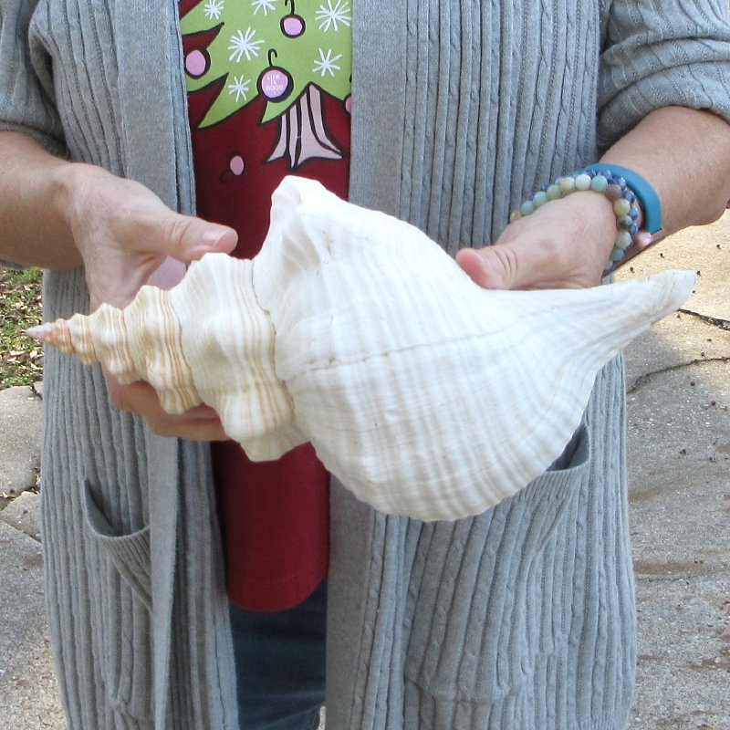 Horse conch for sale, Triplofusus giganteus, common name the Florida horse conch. It measures approximately 12 inches in length.  This species is the largest gastropod in the American waters. - Review all photos. These beautiful large seashells are used in coastal home decorating and seashell decor. The horse conch is the official state seashell of Florida. The shell is popular with shell collectors partly because of its great size.