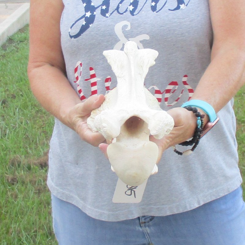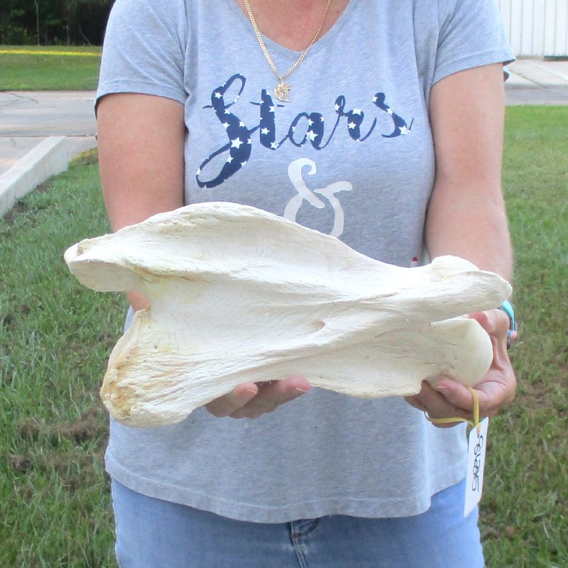 Giraffe Neck Vertebra Bone (Giraffa camelopardalis) for sale measuring approximately 13 inches long and 6-1/2 inches wide.  Review all photos. This giraffe vertebra bone is from a real African Giraffe's neck and will have some stains and natural imperfections normally found on all wild animal bones.