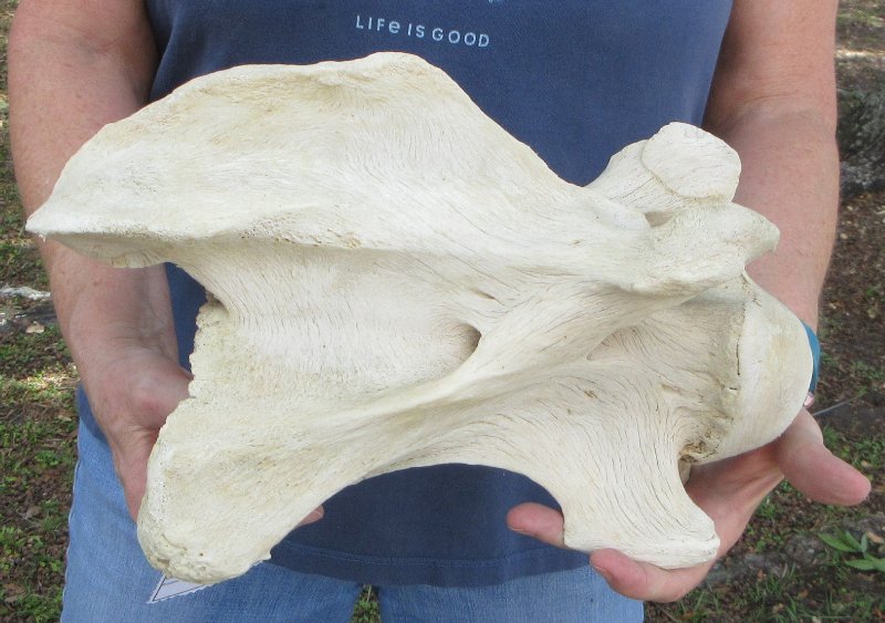 Giraffe Neck Vertebra Bone (Giraffa camelopardalis) for sale measuring approximately 13 inches long and 8-1/2 inches wide.  Discolored - Review all photos. This giraffe vertebra bone is from a real African Giraffe's neck and will have some stains and natural imperfections normally found on all wild animal bones.