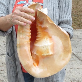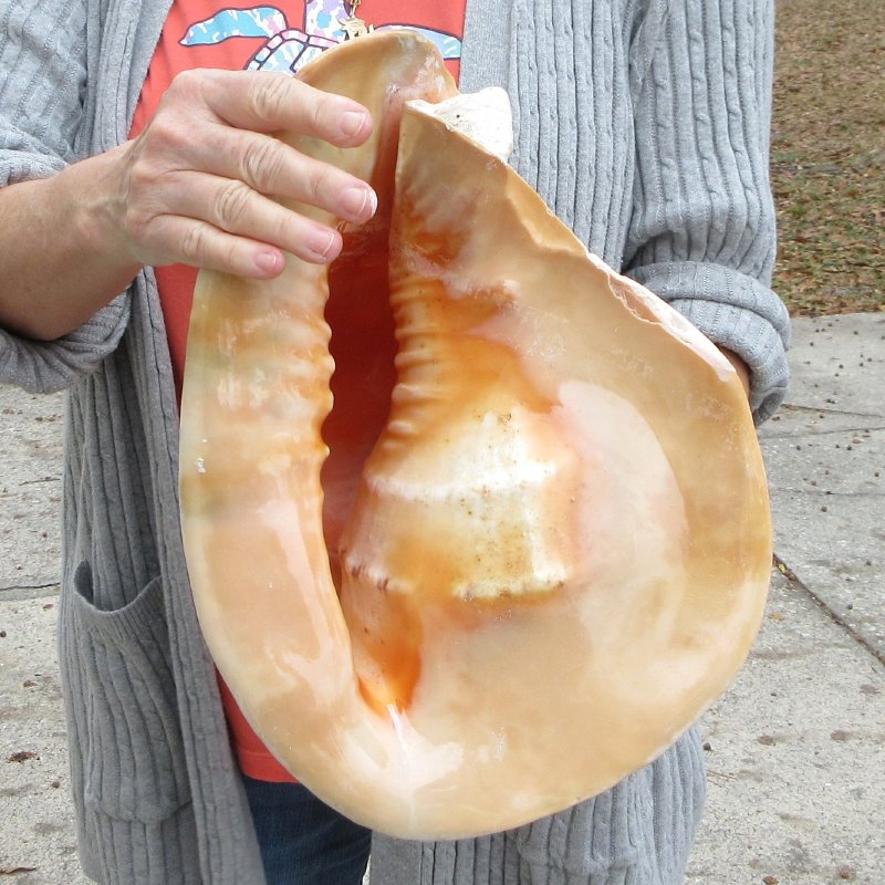 Yellow Helmet Shell, Horned Helmet Shells, Cassis cornuta are large seashells used in coastal home decorating. This shell measures approximately 13 inches long.   -  Shell repaired by putty. Review photos. Yellow helmet shells, also called horned helmet shells are found in the Indo-Pacific. Helmet shells, horned helmet shells, live mostly in warm waters around the world. These yellow helmet shells, also called horned helmet shells or cassis cornuta are beautiful peach colored shells.