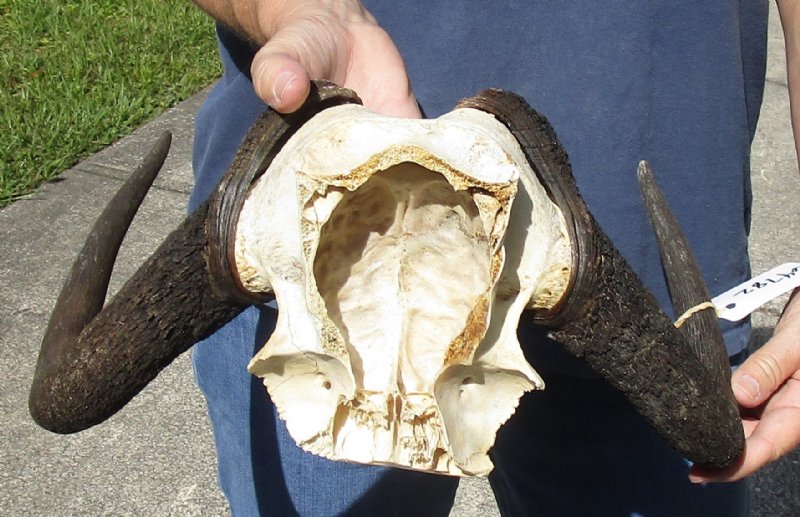 14-1/2 inch wide Female Black Wildebeest skull plate with horns for $37