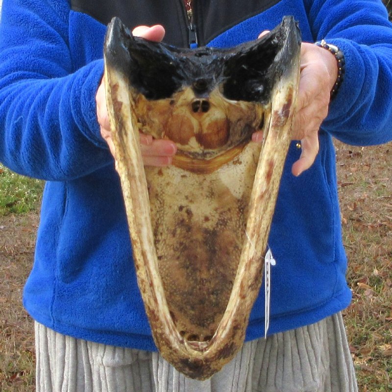 This alligator head measures approximately 14 inches long and 7 inches wide. This is a real alligator head -- NOT a replica. It will have missing and worn teeth, cuts, scrapes and scars --  Review all photos.  Alligator head souvenirs are a profitable retail product for beach shops, souvenir and gift stores catering to gator football fans, tourists, reptile collectors, teachers, students, and collectors of unusual items.  A taxidermy process cures the alligator skin and the alligator skull so it will be preserved for years.  These gator heads come from gator farms who harvest the gators for their meat and hide.