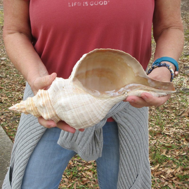 Horse conch for sale, Triplofusus giganteus, common name the Florida horse conch. It measures approximately 14 inches in length.  This species is the largest gastropod in the American waters. - Review all photos. These beautiful large seashells are used in coastal home decorating and seashell decor. The horse conch is the official state seashell of Florida. The shell is popular with shell collectors partly because of its great size.