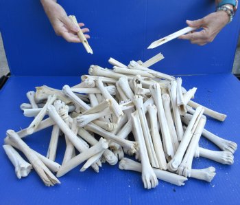 15 pound box of Assorted Deer leg bones / broken measuring approximately up to 12 inches. These bones/bone pieces are good for carving or crafting. This is a discounted / damaged lot of bones - They are broken and some of the bones may have stains.