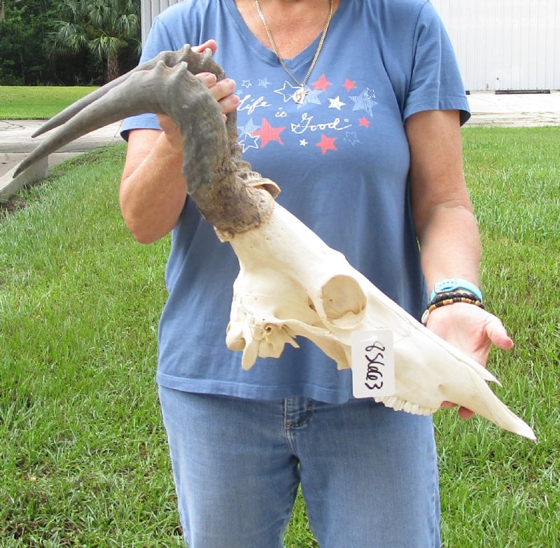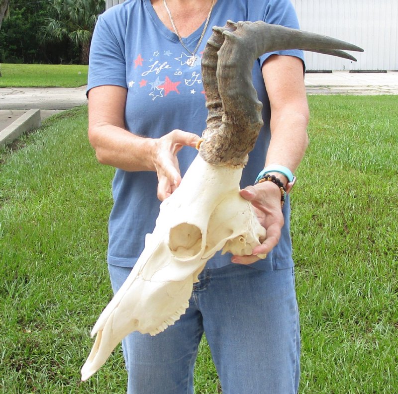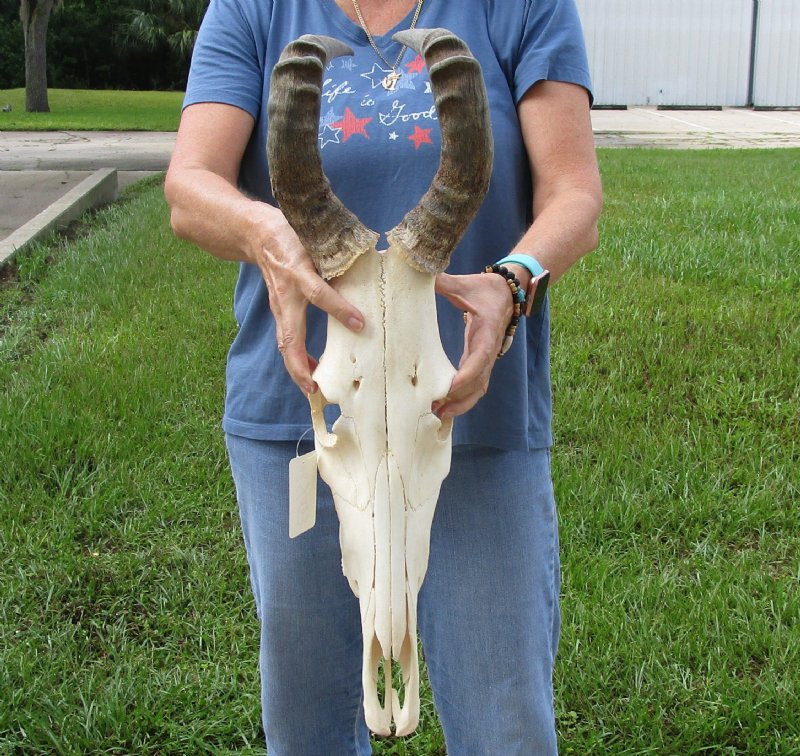 African Red Hartebeest (male) Skull (Alcelaphus buselaphus) with horns for sale. The horns measure approximately 17 inches, around the curve of the horn -- not straight. - Review all photos. This red hartebeest skull plate and horns are from a wild African Red Hartebeest and will have natural imperfections found on all wild animals fighting and living in the wild. All our red hartebeest skull and horns have been imported from South Africa and cleared for legal entry into the U.S. by the U.S. Fish & Wildlife Service and U.S. Customs.