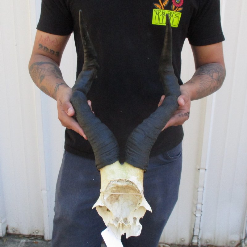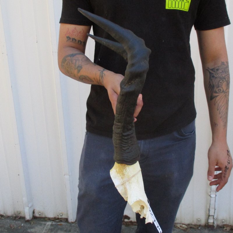African Female Red Hartebeest Skull Plate (Alcelaphus buselaphus) with horns for sale. The horns measure approximately 17 inches, around the curve of the horn -- not straight. - Review all photos. This red hartebeest skull plate and horns are from a wild African Red Hartebeest and will have natural imperfections found on all wild animals fighting and living in the wild. All our red hartebeest skull and horns have been imported from South Africa and cleared for legal entry into the U.S. by the U.S. Fish & Wildlife Service and U.S. Customs.
