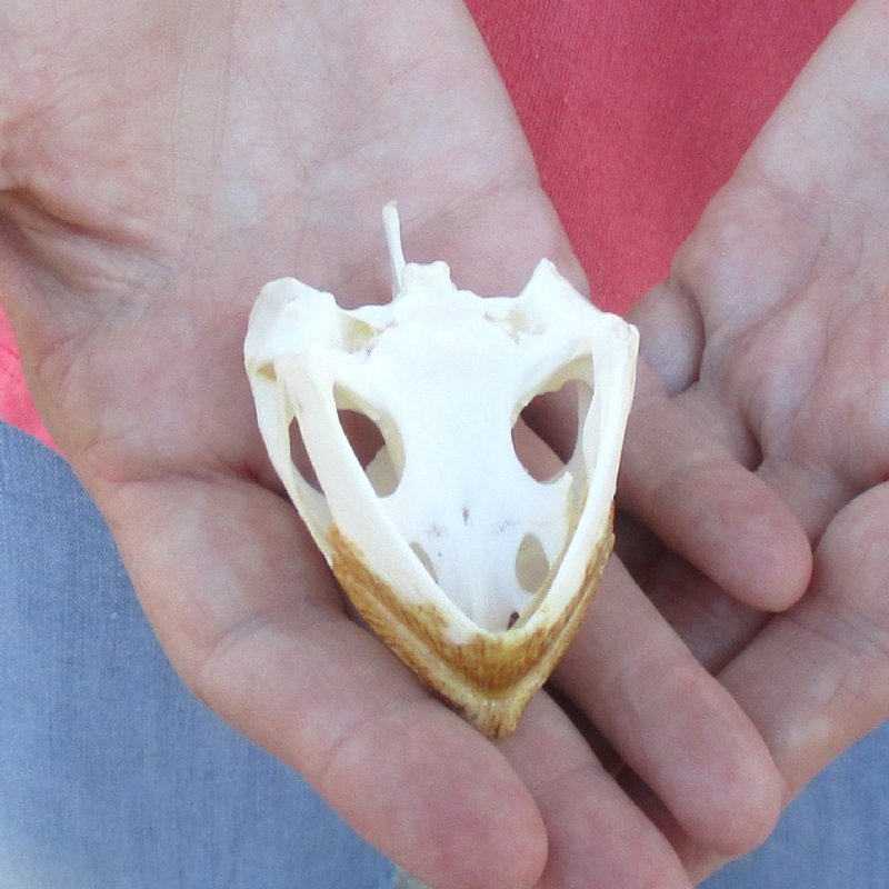 Common North American Snapping Turtle Skull (Chelydra serpentina) measuring approximately 2-3/4 inches long, and 1-3/4 inches wide. Review all photos. Turtle skulls can be used in Native American crafts. The snapping turtle is a cold-blooded fresh water animal and will usually be found during the day sitting in the sun on a rock, log, or any stumps that are near the water.  Common snappers are noted for their belligerent disposition when out of the water, they have powerful beak-like jaws and a highly mobile head and neck. In some areas they are heavily hunted for their meat, a popular ingredient in turtle soup.