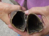 These are real bushbuck horns and they will have natural imperfections from living in the wild and using their horns for fighting, such as tiny chips and small splits at the mouth opening, tiny cuts, scars, blemishes, etc.  See all photos.