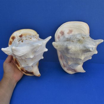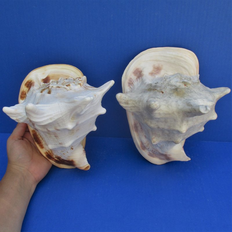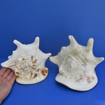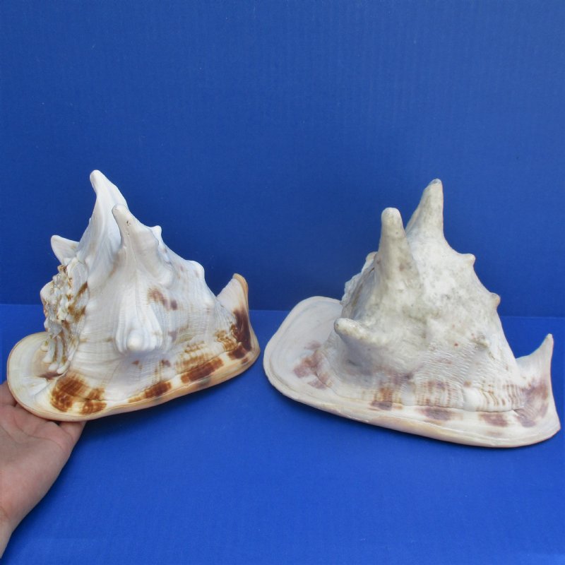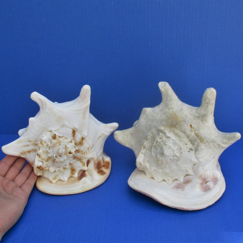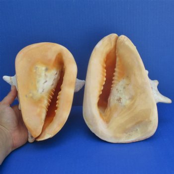 Yellow Helmet shells, also called horned helmet shells (Cassis cornuta) are found in the Indo-Pacific.  These shells measure approximately 7 and 8 inches long. Helmet shells, horned helmet shells, live mostly in warm waters around the world. These yellow helmet shells are a beautiful peach color and often used in coastal home decorating. This is a real shell - not a replica.  It will have some imperfections (chips, calcium, rough spots, broken tips, etc.) from living in the oceans and aging.