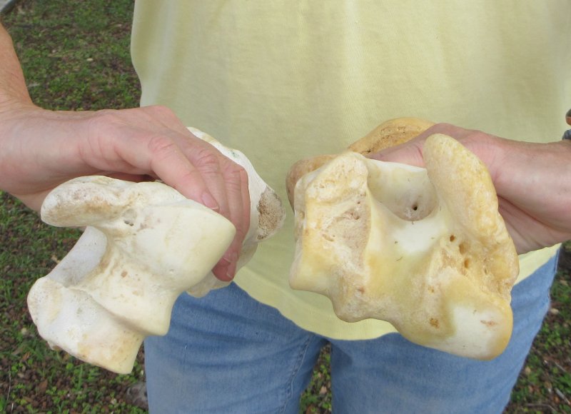 Two piece lot of B-Grade Buffalo Humerus (Bubalus bubalis) leg bones measuring approximately 11 and 12 inches long. This Buffalo Leg Bone was cleaned and whitened and imported from India. These bones will have some cracks, missing chunks of bone, especially near the edges or joints. tiny holes, fine lines, chipped edges and stains or discoloration - Review all photos. Buffalo leg bones are used for carving, scrimshaw art, and for numerous other craft projects.