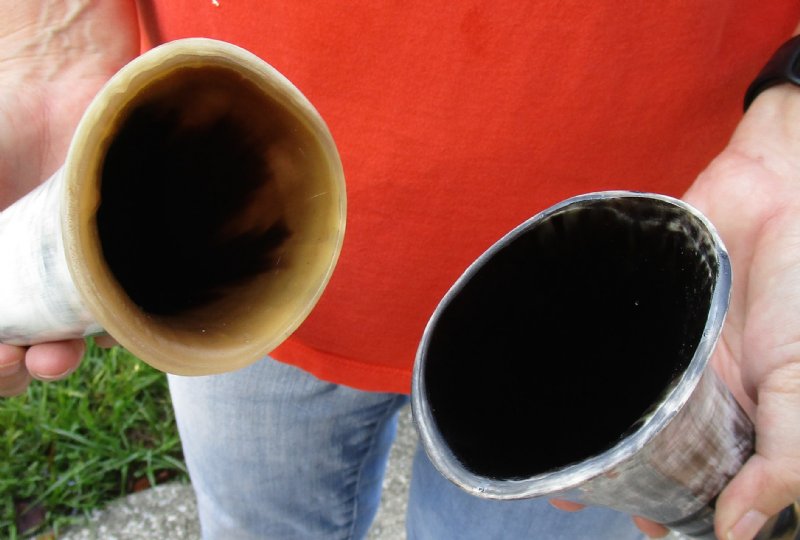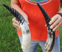 2 pc lot of Spiral Carved Polished Cattle/Cow Horns, 13 and 14 inches for $25/lot