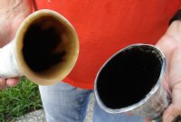 Some of these horns have a tiny patch at the tip of the horn where a tiny hole was drilled to release the pressure and allow removal of the inner bone.