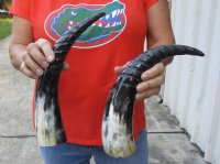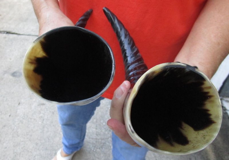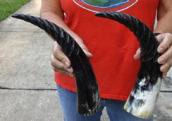 2 pc lot of Spiral Carved Polished Cattle/Cow Horns, 13 and 14 inches for $18/lot