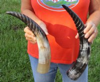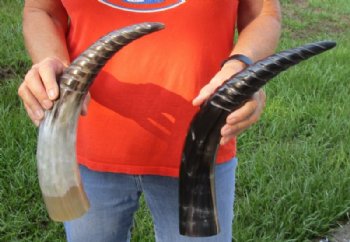 2 pc lot of Spiral Carved Polished Cattle/Cow Horns, 16 and 17 inches for $31/lot