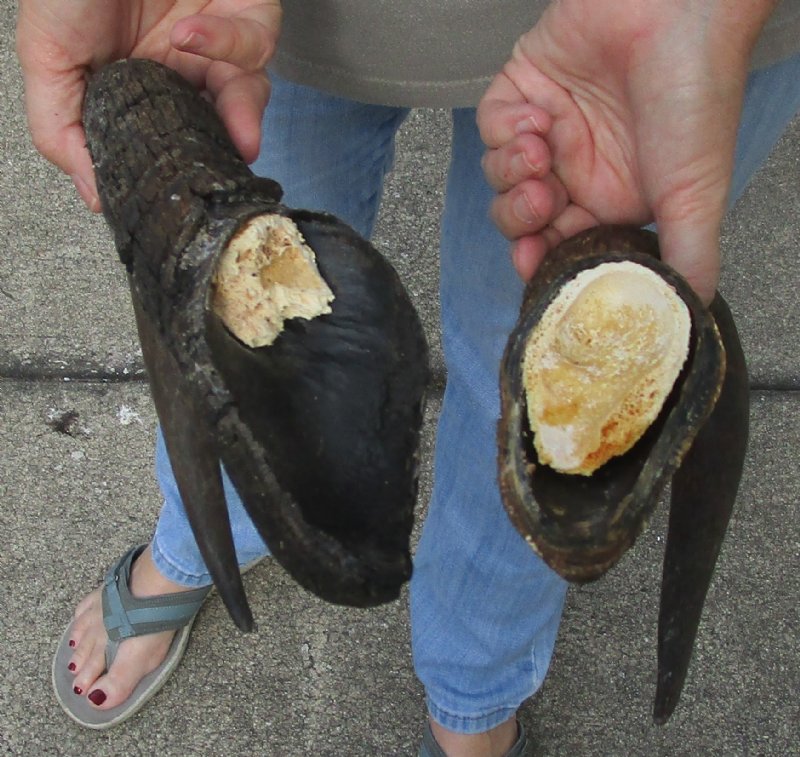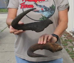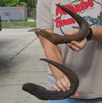 2 piece lot of 17 & 19 inch black wildebeest horns for $21