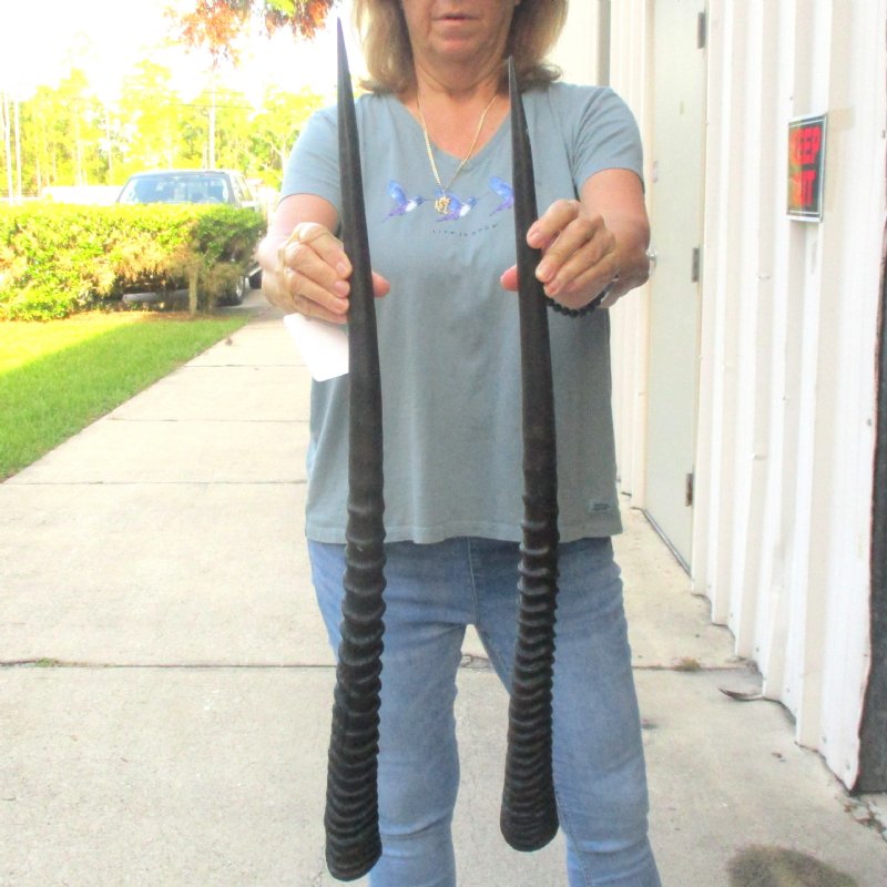 2 Piece Lot of 30-1/4 & 28-1/4 Inch Authentic African Gemsbok, Oryx horns available for purchase $43/lot
