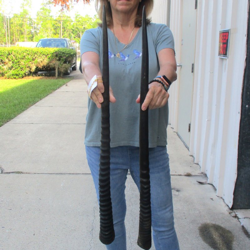 2 Piece Lot of 31-1/4 & 32-1/4 Inch Authentic African Gemsbok, Oryx horns available for purchase $43/lot