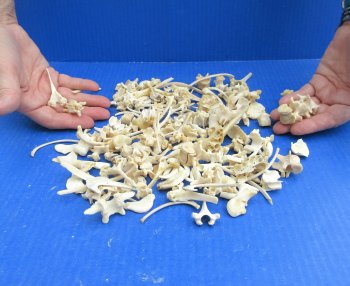 200 assorted tiny animal bones for sale, measuring approximately 1/4 to 2 inches in size. These small animal bones of deer, wild boar, raccoons, opossums, alligator jaw bones and coyotes, can be used for bone crafts and bone jewelry.  They have been cleaned and whitened; however, some may have some dried cartilage on the bones and have some discoloration. These are real bones - not replicas.