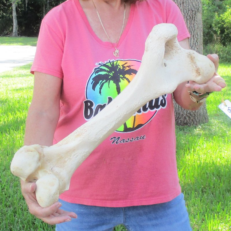 African Giraffe Femur Leg Bone (Giraffa camelopardalis) from the upper leg bone measures approximately 21-1/2 inches long. -Review all photos. This bone is from a real African giraffe and will have natural imperfections such as cracks, holes, fine lines, chipped edges, stains, and putty patchwork, etc. that are found on all animal bones. It has been cleaned, but not whitened. This giraffe bone has been cleared for legal entry into the U.S. by the U.S Fish and Wildlife Service and U.S Customs.